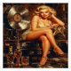 A dazzling vintage-style pin-up radiates confidence, lounging atop a classic Marlin radio with a gleaming gold record. Surrounded by crystal decanters, a cocktail glass, and warm golden lighting, this glamorous scene blends retro elegance with modern allure—perfect for a night of timeless sophistication.