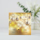 A dazzling holiday card in gold and silver with shimmering, hanging, Christmas balls and stars.