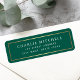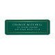 Dark forest green or custom color return address labels with a thin golden gradient (printed image) border. Fonts and background color can be customized with the design tool.