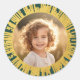 Golden gradient sunburst photo Christmas green Classic Round Sticker