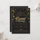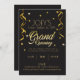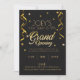 Elegant, simple opening celebration RSVP invitation card designed with golden gradient text, ribbons, stars as decorative. Invite your customers to your new business launching with modern and stylish design invitation card. Simply edit text with your business contact details at the front and back of the card.