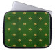 This Irish inspired pattern features metallic gold four leaf clovers on a dark green background.