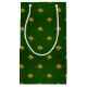This Irish inspired pattern features metallic gold four leaf clovers on a dark green background.