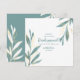 Simple and classy, these bridesmaid party invitations are the perfect way to invite all of your friends to play a role in your big spring or summer wedding. Features gold and green watercolor floral leaves with grey text that is completely customisable. The back has a green background with gold and white foliage.