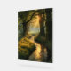 Golden Grove Sunrise captures a serene forest scene at dawn, where the sun’s golden rays break through the canopy of ancient trees. A gentle stream winds through, reflecting the warm sunlight onto golden grasses lining its banks. Mist lingers in the background, adding depth and softness to the composition. This artwork envelops any space in its tranquillity and the soothing beauty of morning light—perfect for nature lovers and peaceful interior aesthetics.