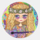 Golden Hair Hippie Chick Purple Guitar Peace Sign Classic Round Sticker