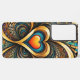 This digital artwork features a central, stylised heart glowing with warm orange and yellow hues, set against a deep black background. The heart is nested within an intricate, golden ribbon that forms an elegant infinity symbol. This central motif is surrounded by a vibrant, swirling mosaic of abstract patterns and textures. The design is rich with intricate details, showcasing a mix of earthy tones like golds and browns, alongside cool blues and teals, with pops of orange and purple. The overall effect is one of dynamic harmony, combining a sense of eternal love and connection with a mesmerising, kaleidoscopic beauty. The piece feels both organic and geometric, with a feeling of movement and energy emanating from its core.