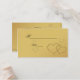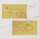Elegant place card with 2 golden hearts on a golden background with gold and blue hearts.