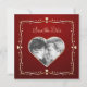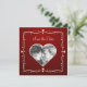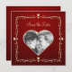 Personalised Save the Date announcement with golden hearts on dark red background.