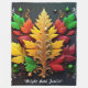 A vibrant design featuring colorful leaves with golden accents, set on a textured background with subtle Christmas elements, bringing festive elegance and warmth to any holiday setting. "Original Image was generated by Meta AI. AI generated artwork. Licensed under CC BY-SA 4.0."