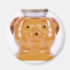 Close view of a bear shaped container full of golden honey. Sweet amber honey filled face, plump and full. See more of this cute honey bear design in our store!
