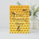 This card feels like a view inside a bee hive with a golden honeycomb and three flying bees. The front of the card can display your custom greeting or in either large or small text with honey flowing over the words. The back has two pretty bees to accentuate your message.