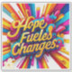 A vibrant design where multi-coloured text "Hope Fuels Changes." radiates with energy, each letter gleaming with golden accents that symbolise hope’s power to transform. The lively hues blend together in harmony, evoking a sense of optimism and renewal, while the golden highlights add an inspiring touch of warmth and promise. "Original Image was generated by Meta AI. AI generated artwork. Licensed under CC BY-SA 4.0.