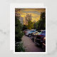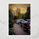 This foil-embellished invitation captures a deeply poetic urban moment—where metal meets nature, and routine becomes reverent. The photo, taken during that brief, magical pause before dusk, reveals a city corner saturated in warmth and stillness. Every detail speaks of presence: the shimmer of sunset reflecting off car windows, the rhythm of concrete softened by summer greens. It’s modern, real, and unexpectedly moving.