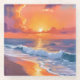 Golden Hour Orange Sunset Beach Ocean Painting Art Glass Coaster