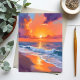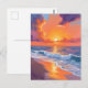 Golden Hour Orange Sunset Beach Ocean Painting Postcard
