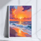 Golden Hour Orange Sunset Beach Ocean Painting Poster