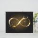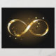 Gold, jewellery infinity symbol with gold stars on a black background. Design with gold star.