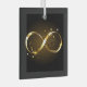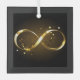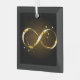 Gold, jewellery infinity symbol with gold stars on a black background. Design with gold star.