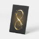 Gold, jewellery infinity symbol with gold stars on a black background. Design with gold star.