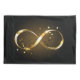 Gold, jewellery infinity symbol with gold stars on a black background. Design with gold star.