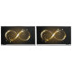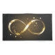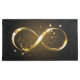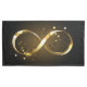 Gold, jewellery infinity symbol with gold stars on a black background. Design with gold star.
