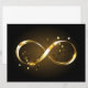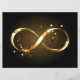 Gold, jewellery infinity symbol with gold stars on a black background. Design with gold star.