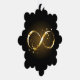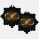 Gold, jewellery infinity symbol with gold stars on a black background. Design with gold star.