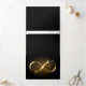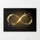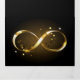 Gold, jewellery infinity symbol with gold stars on a black background. Design with gold star.