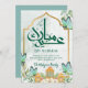 Golden Islamic Arch Teal Butterflies Eid Mubarak Holiday Card