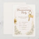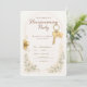 Refined housewarming design featuring soft beige tones, muted sage greenery, and gold key accents within an arched layout. Clean lines and gentle watercolor details frame the space, ideal for hosting a new home gathering with a warm, polished setting.