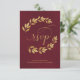Golden Laurel Leaves on Burgundy Elegant Wedding RSVP Card