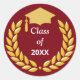 Golden Laurel Wreath Class of 20XX on Burgundy Classic Round Sticker
