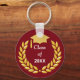 Elegant golden laurel wreath Class of 20XX on burgundy Keychain. Meaningful souvenir for students.