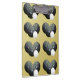 Pictured on a golden background are black lawn bowls with a jack