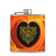 GOLDEN LEAF IN ORANGE FRACTAL SWIRLS HIP FLASK