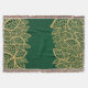 Golden leaf lace on green background throw blanket