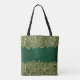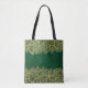 Golden leaf lace on green background tote bag