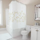 Shower curtain shown in a solid colour of White with Golden colour leafs across the middle section. Customise this item by changing colours of background or leaf pattern, add favourite phrases, etc. or buy as is.