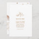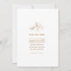 A single sprig of leaves in gold outline is the focal point for the front of this beautiful wedding 'save the date' card. Golden leaves and leaf outlines liberally splashed with gold dust decorate the reverse. The lower-case, typewritten font and modern layout make this an eye-catching card.