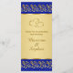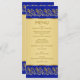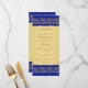 Golden leafy swirls and joined hearts on a royal blue background Wedding Menu Card.