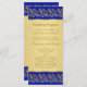 Golden leafy swirls on a royal blue background Wedding program rack card