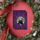 Botanical holiday photo card featuring your photo encircled by a holiday greeting and your family name in gold foil lettering. The background features gold foil leaves on a purple background. The back of the foil holiday card provides space for a custom message or an additional photo.