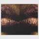 Golden lips closeup. Gold metal lip. Beautiful makeup. Golden lip gloss on beauty female mouth, closeup