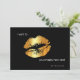 New Year's Eve invitation card with a black background and faux golden lips and the text: 'I want to kiss you a happy new year!' The card is completely customisable.