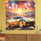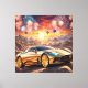 golden luxury car in a desert landscape canvas print