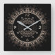 Golden mandala square wall clock