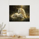 A luminous unicorn lies gracefully in a golden meadow, surrounded by wildflowers under soft sunbeams filtering through the forest. This dreamy, oil-style fantasy artwork exudes magic, serenity, and elegance.