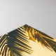 This artwork features a radiant golden Buddha statue seated in deep meditation, set against a breathtaking vista of mist-shrouded Thai mountains and lush tropical jungle. The warm, glowing light of the setting or rising sun streams through the palm fronds, highlighting the exquisite detail of the statue and casting a mystical, ethereal glow over the landscape.