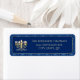 This return address label features a golden menorah on a dark blue centre and the background is a light and dark blue decorative design. The text on this label can be customised and used as either a return address label or can be used as a gift tag!